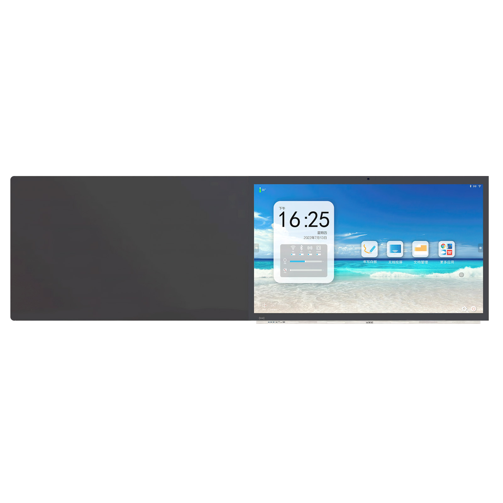 一、整機(jī): 1、 整機(jī)采用一體化設(shè)計(jì),正面顯示為一個(gè)由2塊拼接而成的平面普通黑板,可實(shí)現(xiàn)整塊黑板統(tǒng)一屏幕書(shū)寫(xiě)。左側(cè)或右側(cè)區(qū)域?yàn)長(zhǎng)ED液晶顯示屏幕,防眩光鋼化玻璃。 2、 左右側(cè)書(shū)寫(xiě)板采用高抗反光納米材料,實(shí)現(xiàn)無(wú)反光效果,在任何角度均可清晰可見(jiàn)書(shū)寫(xiě)筆跡。 3、 整機(jī)尺寸:長(zhǎng)≥4200mm、高≥1200mm、厚≦110mm,中間區(qū)域屏幕采用86英寸 LED 液晶屏,顯示比例16:9,具備防眩光效果。 4、 前置按鍵和接口,按鍵:電源,護(hù)眼,設(shè)置,音量+,音量-,圖像比例,錄屏,觸摸開(kāi)關(guān)。 5、 前置接口:HDMI*1,Touch USB*1,USB*3,Type-C*1。 6、 側(cè)置輸入接口:HDMI*2,USB*2,VGA+AUDIO*1,YPBPR*1,AV*1,TF*1,RJ45*1,RS232*1; 7、 側(cè)置輸出接口:TOUCH USB*1,耳機(jī)*1,AV*1,同軸*1。 8、 整機(jī)具備前置OPS電腦系統(tǒng)一鍵還原隱藏式針孔按鈕,方便解決電腦系統(tǒng)故障。 9、 具備智能感光模塊,可根據(jù)環(huán)境光調(diào)節(jié)屏幕亮度。 10、 具備前置兩個(gè)書(shū)寫(xiě)筆磁吸凹槽,書(shū)寫(xiě)筆可吸附在凹槽內(nèi)。 11、 具有前置錄屏功能按鍵,可將主機(jī)中的課件、音頻和環(huán)境聲音同時(shí)錄制。 12、 內(nèi)置音箱:≥2*15W前置全頻揚(yáng)聲器。 13、 內(nèi)置1400 萬(wàn) COMS高清攝像機(jī),嵌入式設(shè)計(jì)與觸屏同平面,滿足交互式教學(xué)需要; 14、 內(nèi)置8陣列拾音麥克風(fēng)系統(tǒng),滿足視頻會(huì)議系統(tǒng)交互功能,采集范圍≥8米。 15、 整機(jī)內(nèi)置安卓嵌入式系統(tǒng),不低于Android 8.0版本;機(jī)身內(nèi)存不低于32G ROM,運(yùn)行內(nèi)存不低于3G RAM。 16、 具有五指手勢(shì)息屏及五指手勢(shì)屏幕喚醒功能。 17、 自持自定義設(shè)置開(kāi)、關(guān)機(jī)時(shí)間。 18、 具備硬件系統(tǒng)檢測(cè)功能,對(duì)系統(tǒng)主板型號(hào)、內(nèi)存、存儲(chǔ)、CPU、系統(tǒng)軟件版本、觸控單元、OPS 模塊、光感、網(wǎng)絡(luò)等提供狀態(tài)提示信息。 19、 支持本機(jī)APP軟件管理,包括強(qiáng)制停止、卸載。 20、 內(nèi)置手機(jī)投屏軟件,可進(jìn)行手機(jī)投屏。 21、 具備鎖屏功能,可設(shè)置密碼解鎖、手勢(shì)解鎖,USB KEY解鎖。 22、 具備APP鎖定功能,可鎖定內(nèi)置任意APP,有效管控APP的使用。 二、觸摸與顯示系統(tǒng): 1、液晶顯示屏幕采用工業(yè)級(jí)A規(guī)液晶面板,圖像分辨率≥3840*2160;亮度≥350cd/㎡;可視角度≥178°。 2、采用先進(jìn)納米電容觸控技術(shù),觸摸模式:支持HID免驅(qū)技術(shù),無(wú)需安裝驅(qū)動(dòng)即可以實(shí)現(xiàn)多人同時(shí)書(shū)寫(xiě)與操作功能,支持20點(diǎn)觸控。 三、內(nèi)置插拔式電腦: 1、 采用模塊化電腦方案,標(biāo)準(zhǔn)80針OPS-C電腦接口,外部無(wú)任何連線,方便老師使用與維護(hù)。 2、 處理器:Intel Core i5或以上 CPU;內(nèi)存規(guī)格:≥8G內(nèi)存;硬盤(pán):≥256G 固態(tài)硬盤(pán)。 3、 顯卡:集成高清顯卡。 4、 網(wǎng)卡類型:1個(gè)千兆網(wǎng)卡Gigabit LAN。 5、 聲卡:集成6聲道音效 四、電子白板軟件 1、屏幕鎖定功能:可直接通過(guò)軟件實(shí)現(xiàn)一鍵鎖定、一鍵開(kāi)啟觸摸功能,防止誤操作。 2、筆功能:提供鉛筆、軟筆、毛筆、紋理筆、半透明筆、對(duì)象筆、智能筆、彩筆等筆型,并提供多種線型,粗細(xì),顏色,透明度等屬性設(shè)置 3、擦除功能:提供對(duì)象擦、位圖擦、圖片擦,清除頁(yè)面等擦除方式。 4、圖形繪制:可實(shí)現(xiàn)圖形的快速繪制,包含直線、矩形、橢圓、圓、三角形、五邊形、五角星形、六邊形、箭頭、立方體、圓柱體、圓錐、三棱錐、四棱錐等,方便用戶快速的創(chuàng)建標(biāo)準(zhǔn)的圖形。。 5、輔助工具:提供放大鏡、直尺、圓規(guī)、直角尺、量角器、錄制、攝像頭、填色桶、探照燈、遮幕、數(shù)學(xué)輸入法、漢字筆畫(huà)等常用工具。 6、頁(yè)面功能:可提供白板頁(yè)、屏幕頁(yè); 7、透明頁(yè)標(biāo)注:可對(duì)電腦頁(yè)面進(jìn)行書(shū)寫(xiě)、批注。 8、頁(yè)面操作:支持對(duì)頁(yè)面的整體放大、縮小、漫游、翻頁(yè)等,其中漫游功能支持對(duì)書(shū)寫(xiě)頁(yè)面的無(wú)限放大和移動(dòng)。 9、直接調(diào)用外部攝像頭視頻;與數(shù)影儀(高拍儀)、具備準(zhǔn)攝像頭接口的視頻展臺(tái)完美結(jié)合,一鍵調(diào)用。 10、手寫(xiě)識(shí)別,支持手寫(xiě)體直接轉(zhuǎn)為印刷體,并實(shí)現(xiàn)快速注音。 11、插入對(duì)象:圖片支持PNG/BMP/JPG等格式的插入;音頻支持MP3/WAVC等格式的插入;視頻支持MP4/WMV/MPG/RMVB/AS等格式的插入;支持WORD\EXCEL\PPT等文件的插入。 12、雙屏?xí)鴮?xiě):具有雙屏?xí)鴮?xiě)功能 13、軟件升級(jí):軟件提供終身免費(fèi)升級(jí)服務(wù)。 |