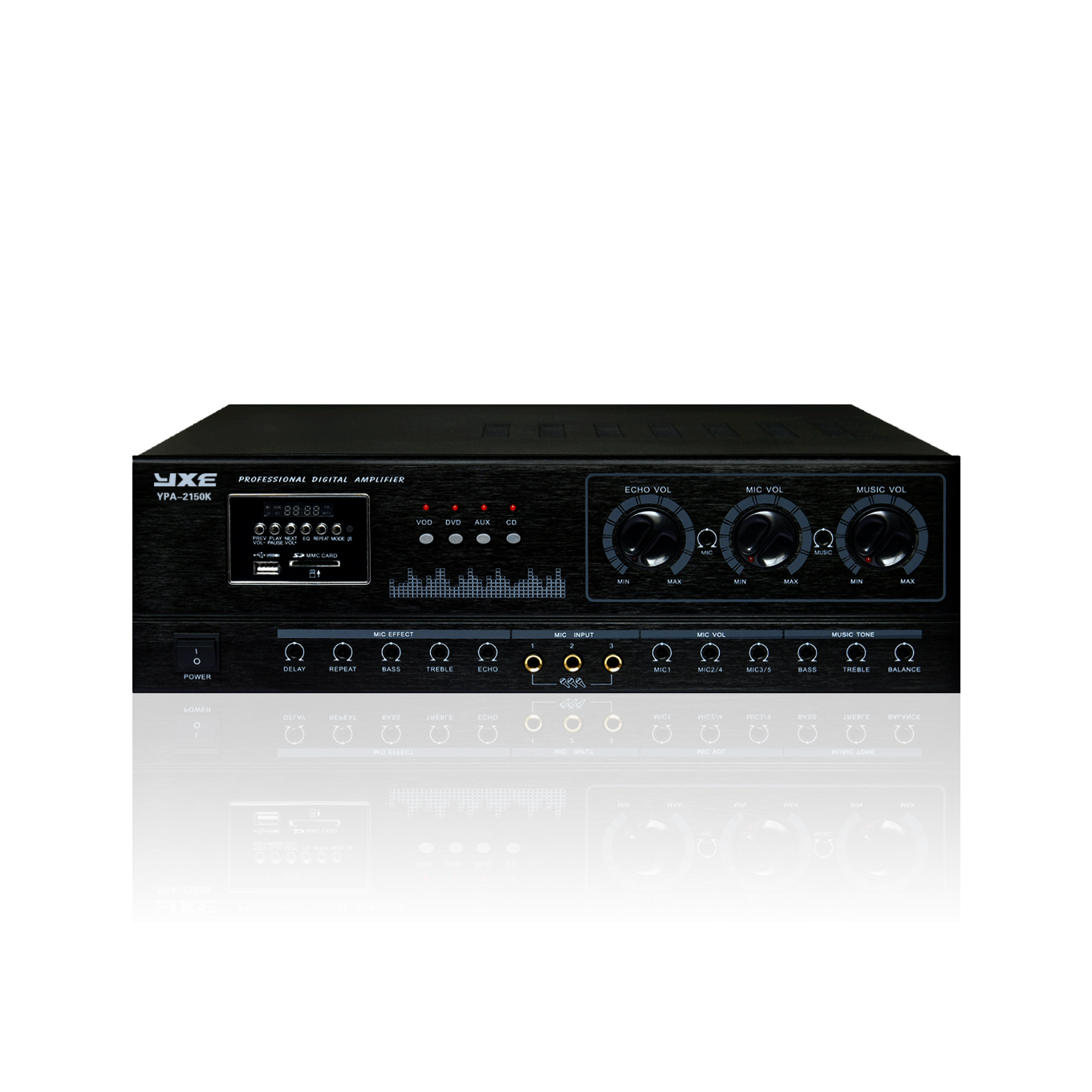 1. 四路立體聲音源輸入切換,可接駁電腦、手機(jī)、DVD等設(shè)備; 2. 采用雙聲道分立元件高保真度功率放大線路; 3. 5路麥克風(fēng)輸入,話筒音量單獨(dú)可調(diào); 4. 具有A+B組功率輸出切換; 5. 雙混響效果,話筒激勵、混響、反饋量獨(dú)立連續(xù)可調(diào),話筒延時連續(xù)可調(diào); 6. 話筒與線路高低音音調(diào)單獨(dú)可調(diào); 7. 內(nèi)置MP3播放器,可接駁U盤及SD卡播放音樂; |