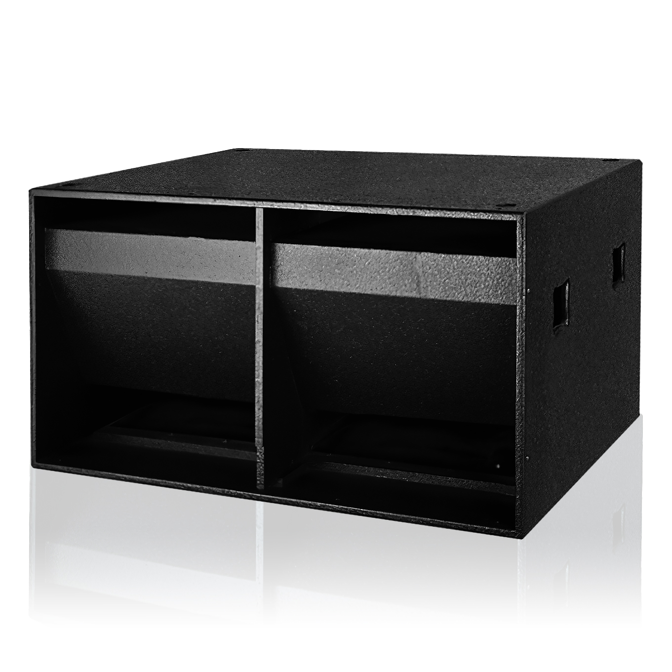 采用2只18英寸(465mm)專(zhuān)業(yè)超低音單元; 2. 采用高成本鋁材鑄造,具備剛性高、無(wú)諧振、重量輕、散熱快的優(yōu)點(diǎn); 3. 錐盆采用高強(qiáng)度復(fù)合紙振膜,三道布折環(huán)涂付阻尼材料,并增加波形加強(qiáng)筋,減少分割震動(dòng)造成的失真,具有平直的頻率曲線(xiàn); 4. 低頻單元采用直徑100mm音圈精選Kapton材料骨架及矩形截面無(wú)氧銅導(dǎo)線(xiàn)注入液磁冷卻,具備:磁隙小、效率高、,重量輕、耐高溫、散熱快特點(diǎn); 5. 耐高溫NOMEX纖維精制定心支片,滿(mǎn)足高聲壓級(jí)輸出時(shí)單元高動(dòng)態(tài)低失真度; 6. 樺木夾板箱體采用迷宮式導(dǎo)向設(shè)計(jì); 7. 外飾黑色晶點(diǎn)漆,硬度高,不易磨損; 8. 箱體設(shè)置全頻箱支撐孔; 9. 線(xiàn)路連接采用NL4插頭; |